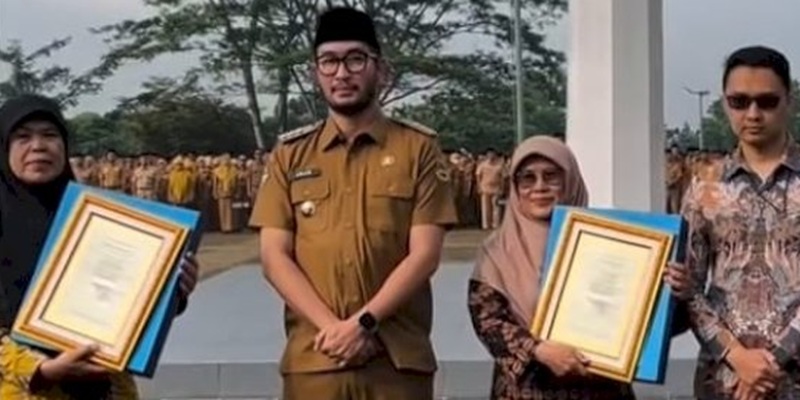 Penghargaan diserahkan Bupati Bandung Barat, Jeje Ritchie Ismail dalam Apel Gabungan Aparatur Sipil Negara (ASN) Pemerintah Kabupaten Bandung Barat yang berlangsung di Lapangan Mekarsari, Kompleks Perkantoran Pemkab Bandung Barat, Senin, 5 Januari 2026.
